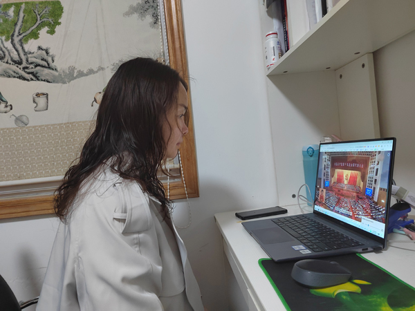 人文与传媒学院学生集中观看比赛视频