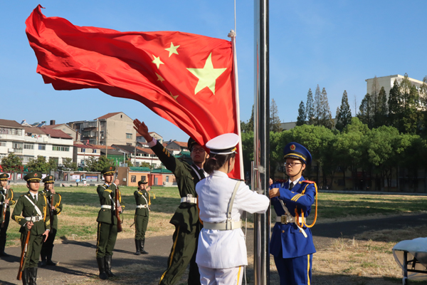 上午8点整,升国旗仪式正式开始,国旗护卫队成员迈着铿锵有力的步伐走向国旗台。升国旗、奏国歌,五星红旗冉冉升起,全体师生行注目礼。