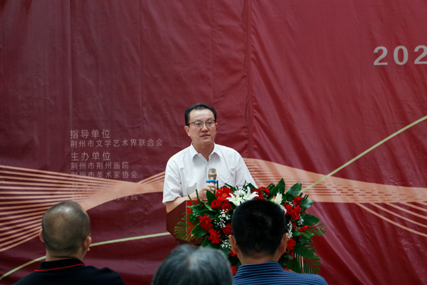学院院长王文凯在致辞中表示,本次展览旨在通过高校课程教育成果,描绘荆州人文历史风貌,用青年一代的热忱展现时代风采,以优异成绩迎接党的二十大胜利召开。王文凯对荆州市美术家协会、荆州画院的专家对我院学生的大力指导表示感谢,也希望本次活动能为文化创作者们提供一个良好的交流平台,为荆州市文化建设助力,创作出更多让人民满意,让时代铭记的精品力作。