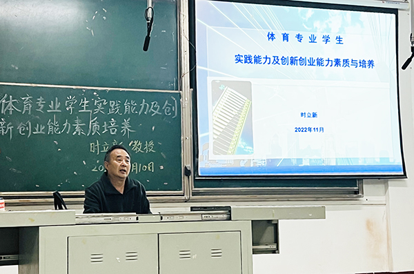 本网讯 11月10日晚,时立新教授在西校区D4-200教室为体育系学子作题为《体育专业学生实践能力培养及创新创业能力素质与培养》的专题讲座。