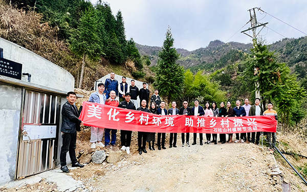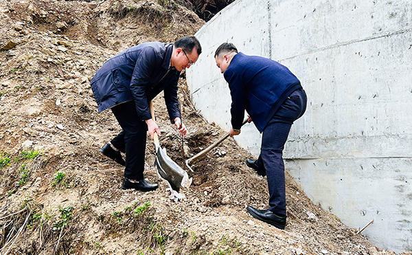 座谈会后,大家一起来到白石湾处。在热烈的掌声中,王文凯和刘旻共同为我院捐建饮水工程项目揭牌,该项目是学院全额投资推动石柱山村水源修复及管网整治工程项目,解决了困扰群众多年的季节性缺水问题。揭牌活动过后,与会人员一起参加了植树活动,以实际行动助力乡村振兴添绿添美。
