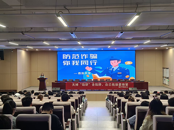 本网讯 4月19日晚,数学与医护系在学术报告厅举办“防范诈骗你我同行”主题宣传教育活动,辅导员李佳给同学们分享了各种类型的诈骗案例,帮助大家分析诈骗的套路,普及各种防诈骗知识。在观看了反诈骗安全教育片《暗流涌动》后,同学们纷纷表示以后要时刻提高警惕,做到未知链接不点击,陌生来电不轻信,个人信息不透露,认清“刷单返利”、“冒充公检法”、“杀猪盘”等骗术的真面目。(图文由数医系提供)
