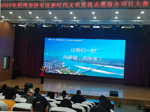 4月25日,2023年荆州市新时代文明实践志愿服务项目大赛沙市区初赛举行。比赛现场,来自荆州各界选送的21个参赛项目同台竞技。经过激烈角逐,人文与传媒学院联合解放街道荆江亭社区选送的《守护一江水 缔造新蔚蓝—长江大保护志愿服务项目》荣获优秀组织奖,我院学生喻洁颖作为项目主讲人上台汇报和领奖。(各教学单位供稿)