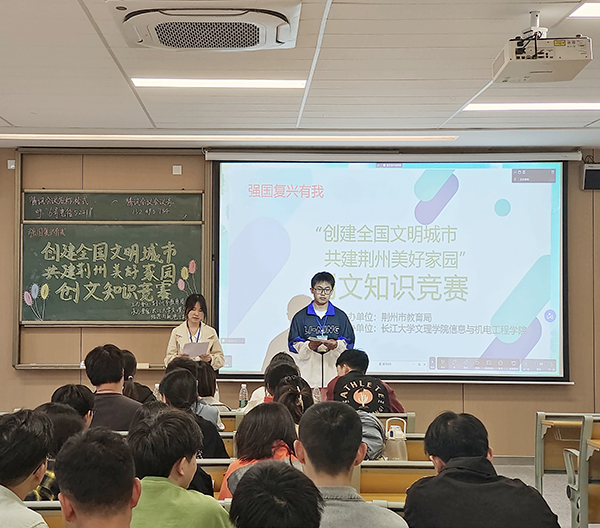 本网讯 为宣传引导学生学习文明礼仪知识、践行文明行为规范、争做文明市民,5月4日中午,信息与机电工程学院举办“创建全国文明城市,共建荆州美好家园”知识竞赛。