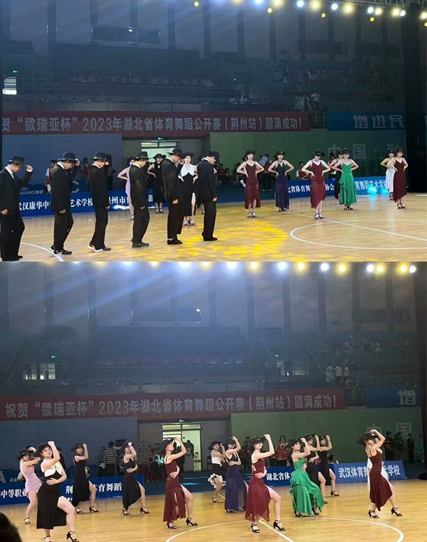 本网讯 近日,“歌瑞亚杯”2023年湖北省体育舞蹈公开赛(荆州站)落幕,体育系学子首次参赛就凭借扎实的舞蹈功底和赛场表现获得冠军。