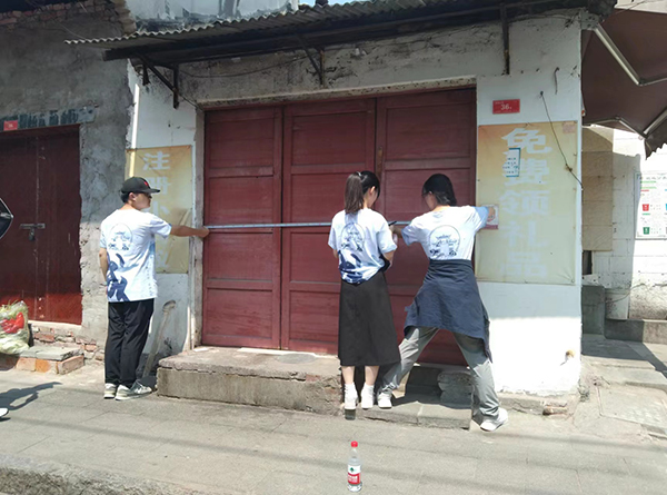 调研中,工作坊成员对三义街居民进行走访,询问当地居民对于古城改造的意愿与建议,并对街区历史古建筑进行测绘,收集相关数据尺寸。之后,工作坊成员去到三义街社区居委会,并与相关人员进行讨论。居委会工作人员表示希望积极开展学校学生与社区居民之间联动合作,并为工作坊成员提供历史文化街区修复与改造建议和相关资料。