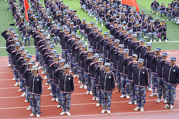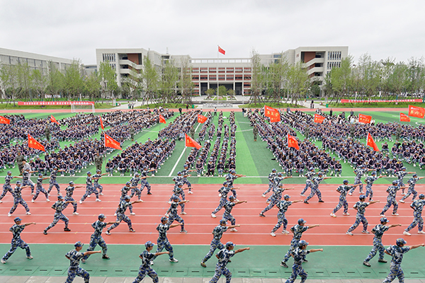 2023级新生组成23个军训连进行了成果展示,汇报了入校15天以来军事训练的成绩。
