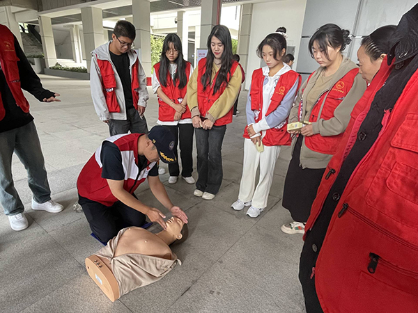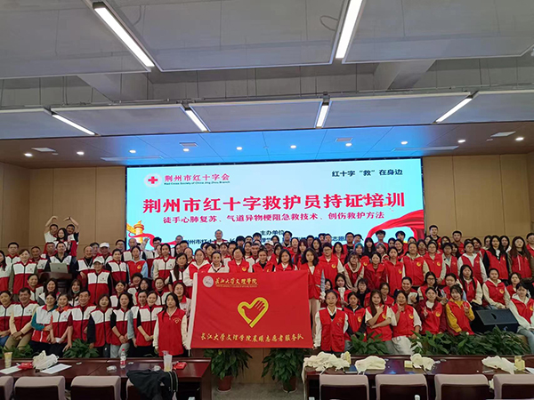 本网讯 近日,我院高职部和荆州市红十字会、荆州市红十字青年志愿服务队联合开展了荆州市红十字持证救护员培训暨志愿服务活动。培训师讲解了红十字运动的起源及发展史,现场示范心肺复苏操作步骤,高职部志愿者现场学习徒手心肺复苏(CPR)、止血包扎等实践操作。(图文由高职部提供)