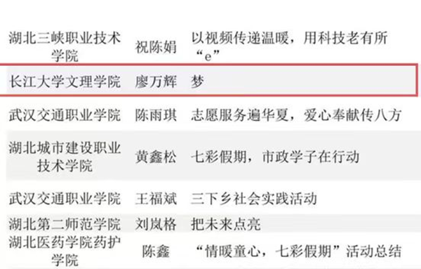 本网讯(记者 筱梦 通讯员 黄婷婷)近日,中国青年报社开展的“广袤乡村 书写青春”2023大学生社会实践成果“千校千项”网络展示活动成绩公布:我院高职部晨曦志愿者服务队廖万辉同学带领团队开展的“三下乡”社会实践项目获优秀项目奖,晨曦志愿者服务队制作的视频《梦》获优秀视频奖。