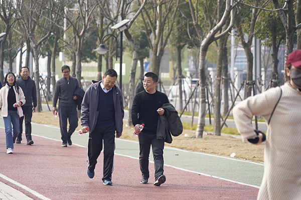 此次活动起点在学校田径场,出学校南门,走曲江路、御河路至荆江大道人行步道,抵达临江仙公园,来自全校13个分工会的教职工参加活动。