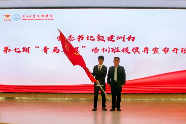 第六期青马班班主任龙晓华老师宣读结业及表彰文件,郭怡彤等60名学员顺利结业,刘欣雨等10名学员被评为“青马之星”。相关职能部门负责人为获奖学生代表颁奖。李则俊为第七期“青马班”班主任、马克思主义学院教师李天赐老师颁发聘书,颜建洲为第七期“青马班”授旗并宣布开班。
