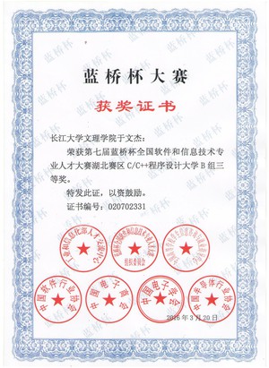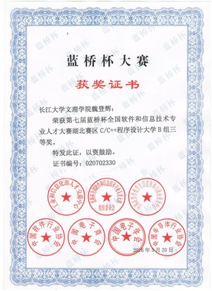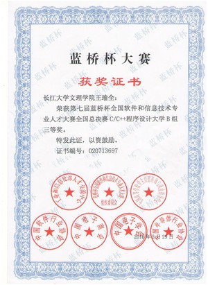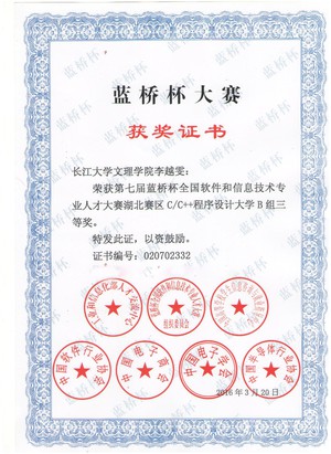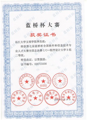 大赛历时8个月,全国近1200所高校,3.5万余名计算机、软件、电子信息相关专业选手报名参加。经过激烈角逐,我院计科5031李昌政同学获得了全国二等奖,计科5151王瑜全获得全国三等奖。