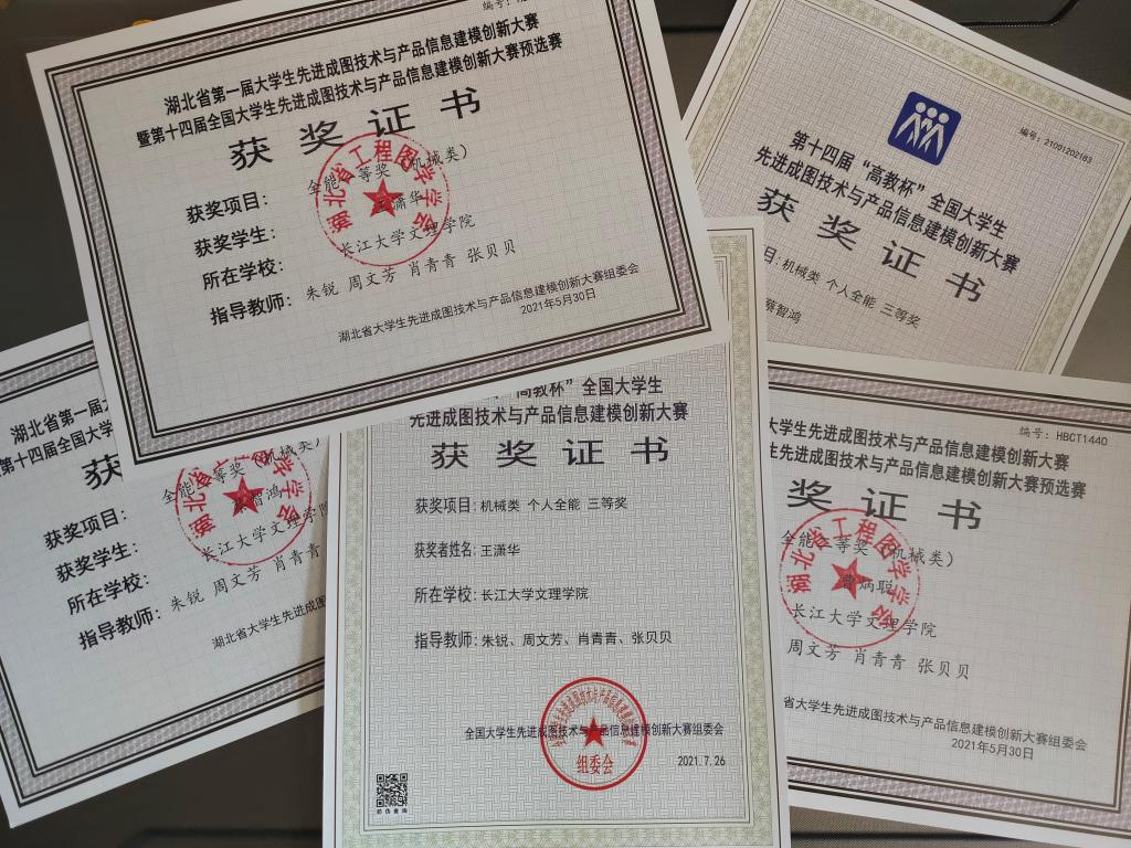 机械类竞赛包含尺规手工绘图、产品数字化建模、创新设计与3D打印四个模块,全方位考察学生机械制图、三维软件造型与机械结构设计、机械创新设计以及现代智能制造技术等方面的综合能力。在朱锐、周文芳、肖青青、张贝贝四位老师的指导下,我系学生团体经过两个月的刻苦练习,进一步夯实了理论知识,提升了专业技能水平。通过激烈角逐,我系王潇华、肖博宇获机械类全能一等奖,曹炳聪、谢宾文、蔡智鸿获得机械类全能二等奖,蔡智鸿、王潇华获得机械类个人全能三等奖。