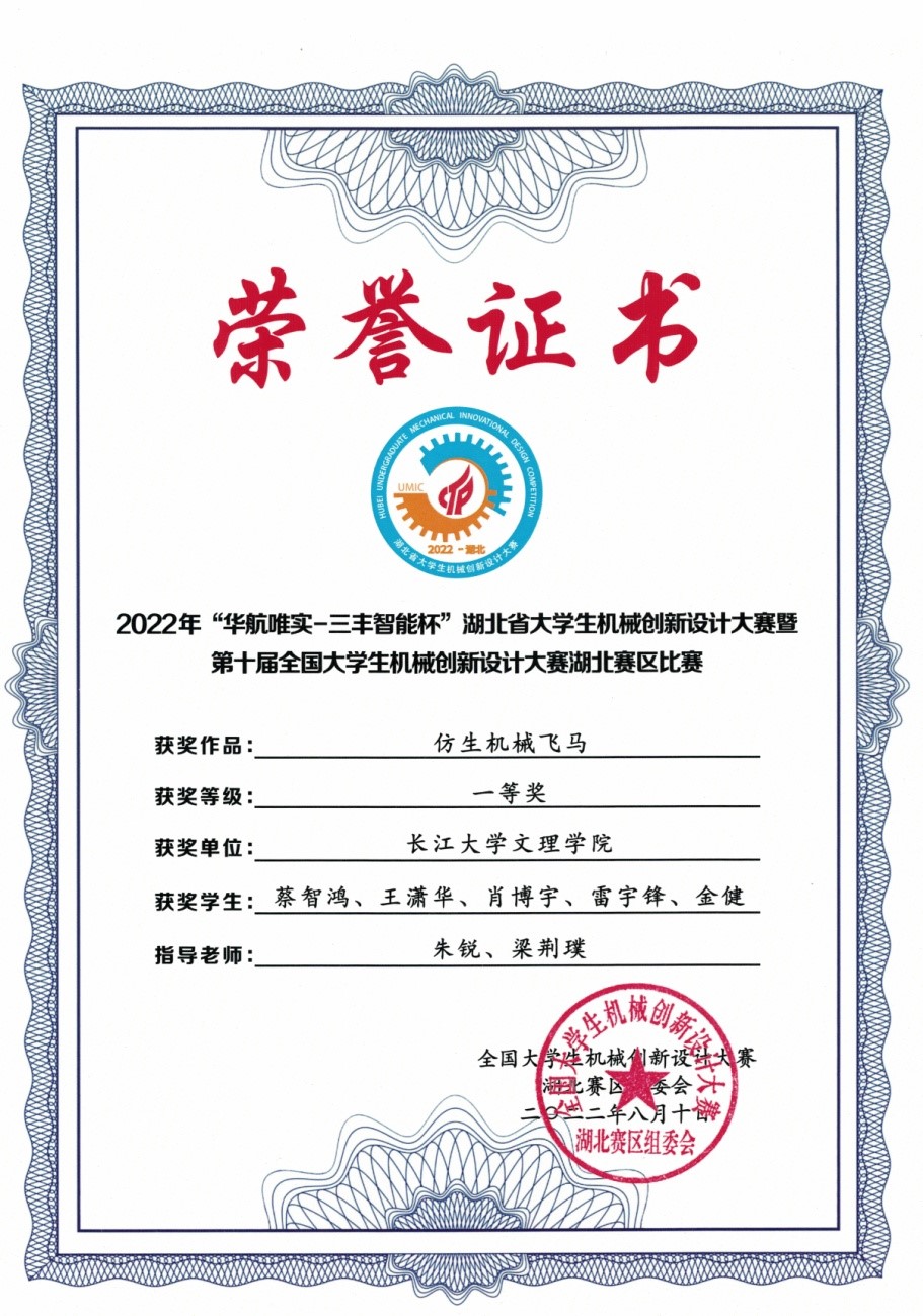 本网讯(学生记者 曲孝佳)近日,我系两支学生团队在湖北省大学生机械创新设计大赛暨第十届全国大学生机械创新设计大赛湖北分区赛中取得优异成绩。我系19级、20级学子踊跃参与,敢于竞争,分别荣获省级团队一等奖、省级团队二等奖。
