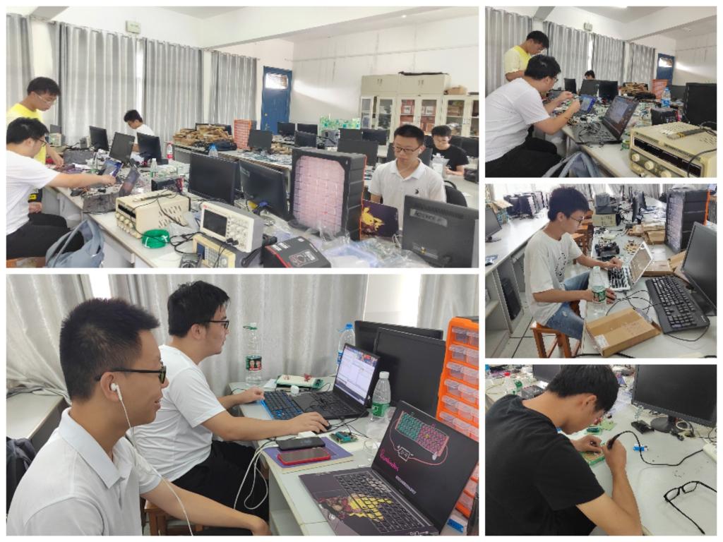 为了更好备赛,我系利用实验室现有资源,集合电子信息类专业学生,从4月份开始进行集中培训,积极备战此次竞赛。指导老师们利用周末休息及暑假时间,通过讲座、实践指导、座谈等多种形式,带领参赛队员紧张有序的学习,攻克了一个又一个电赛课题难关,不断激发学生的潜力。在短短的四天三夜比赛时间内紧张地进行每个环节的制作。一直以来,学院领导、教务处和我系领导对大学生电子设计竞赛高度重视和大力支持,多次看望参赛学生和指导老师,极大提升了学生的比赛信心。