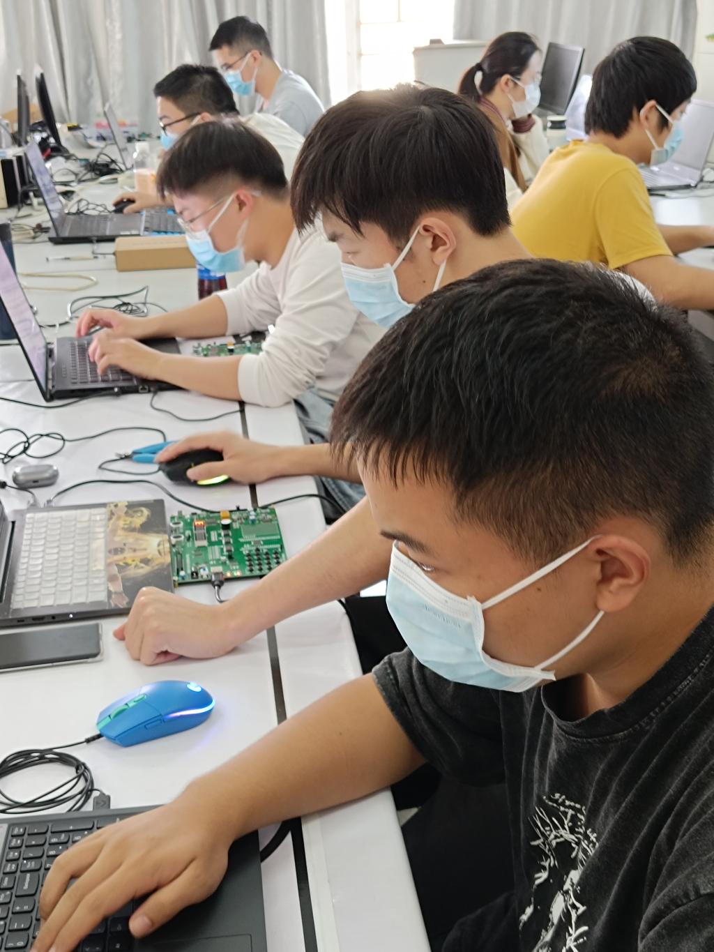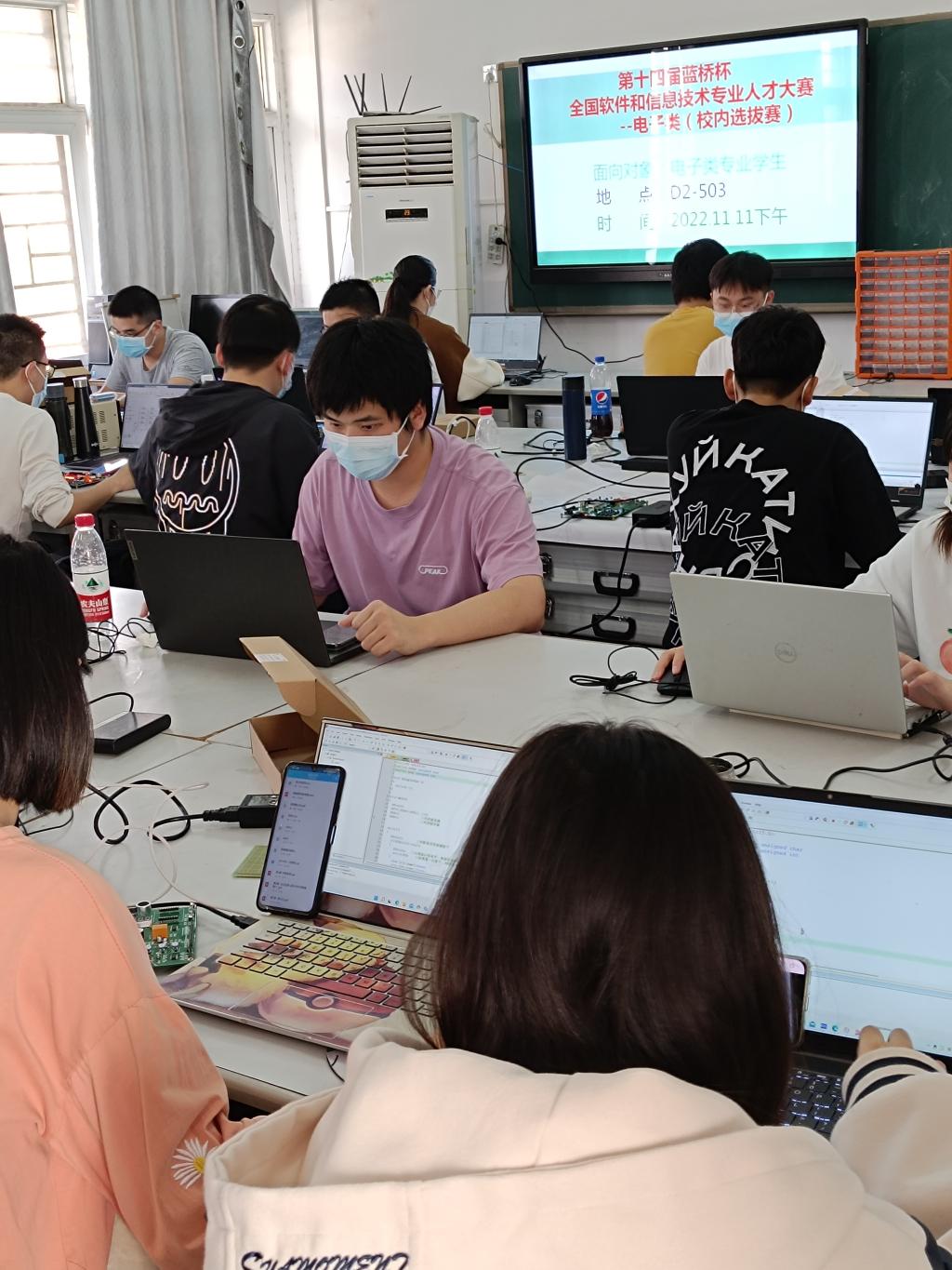 本网讯(通讯员 何朝霞)为鼓励学生积极参加第十四届“蓝桥杯”大赛,挖掘专业知识较强的同学、为有能力的学生创造展示的舞台,2022年11月11日下午,电信教研室举办了“蓝桥杯”大赛(电子类)预选赛。本次预选赛有来自电子类相关专业的25名学生报名参加,比赛科目为单片机设计与开发,比赛时长90分钟。