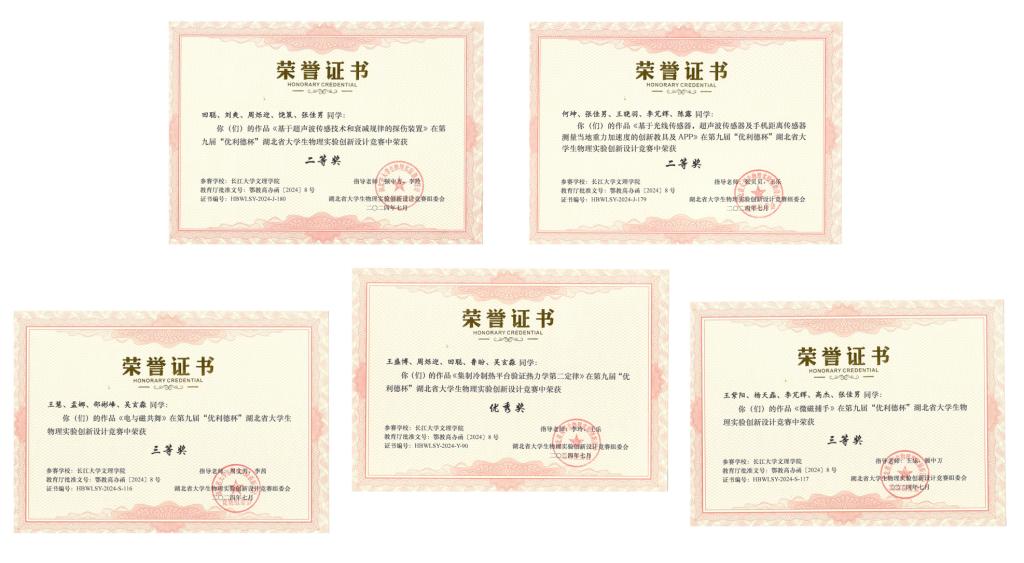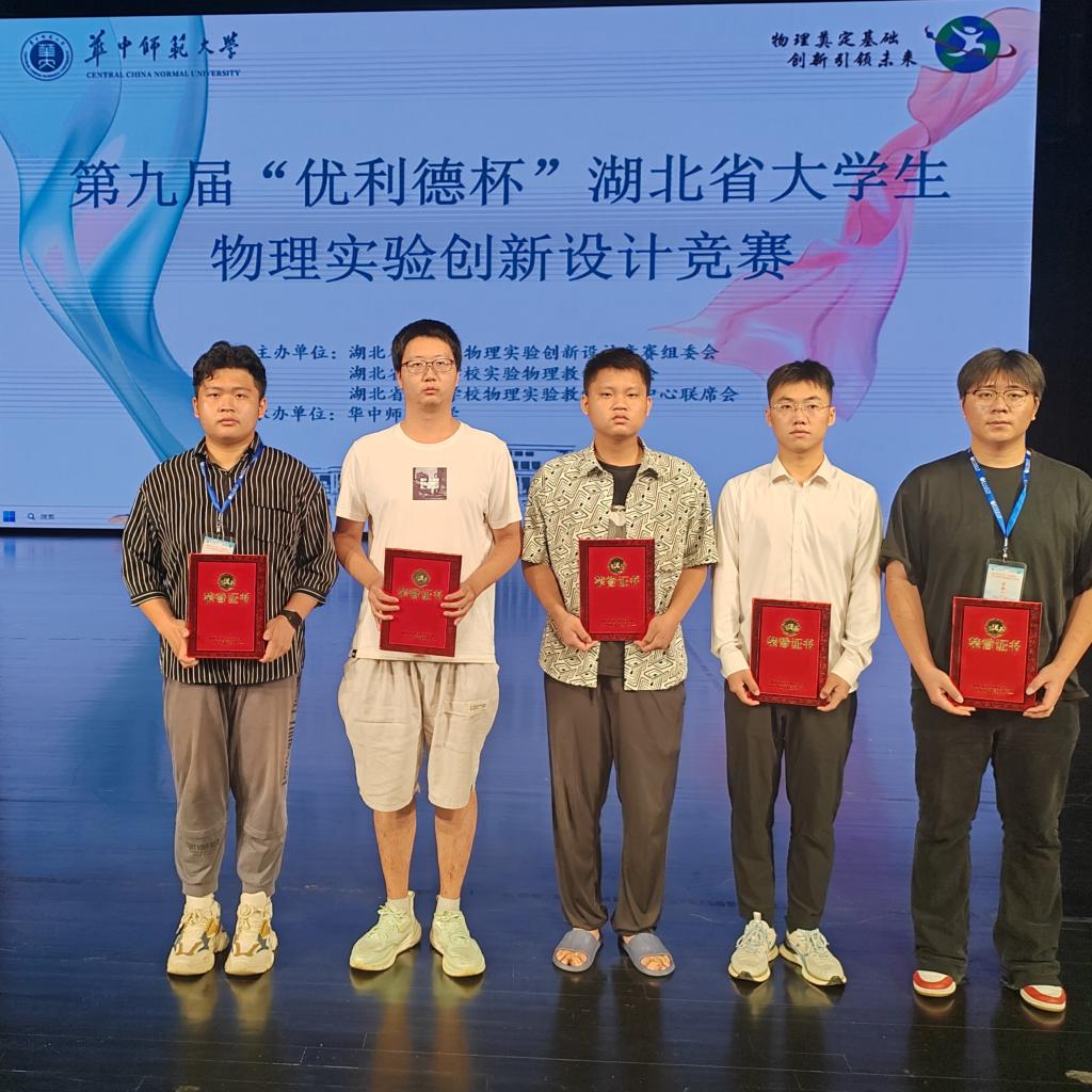 本网讯(王盛博/文)2024年第九届“优利德杯”湖北省大学生物理实验创新设计竞赛决赛在华中师范大学圆满落幕。我院物理学专业参赛的五支队伍分别获得团体二等奖2项、三等奖2项、优秀奖1项的成绩。