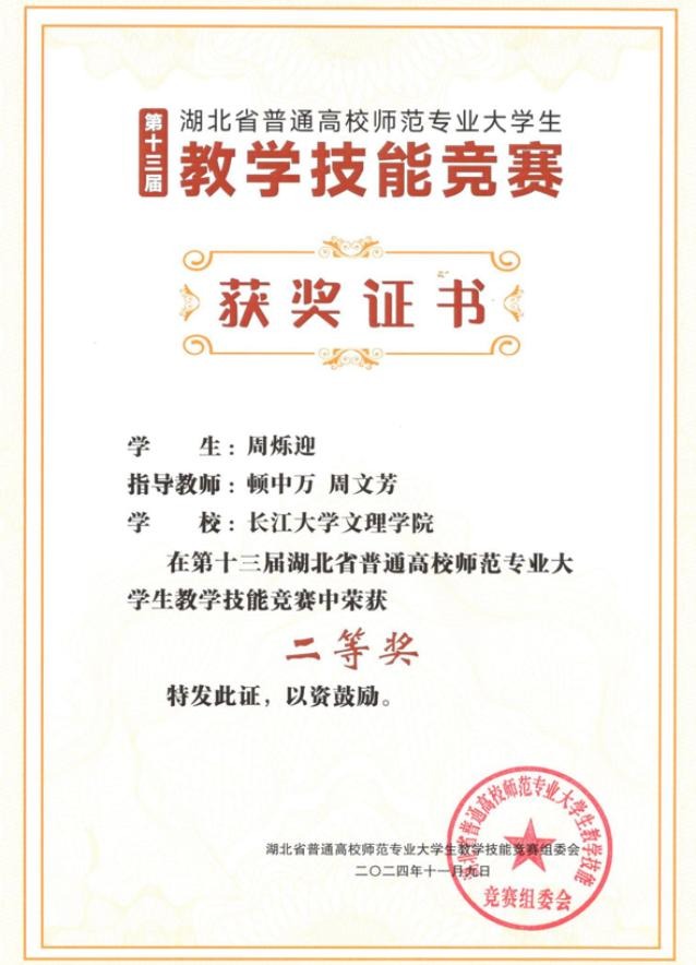 本网讯(王盛博/文)第十三届湖北省普通高校师范专业大学生教学技能竞赛由湖北省教育厅举办,华中师范大学承办,旨在加强师范生实践能力培养,培养优秀教师后备力量。比赛自六月开赛以来,共有省内15所师范院校、10个学科225名选手参与初赛,70名选手突围进入决赛。
