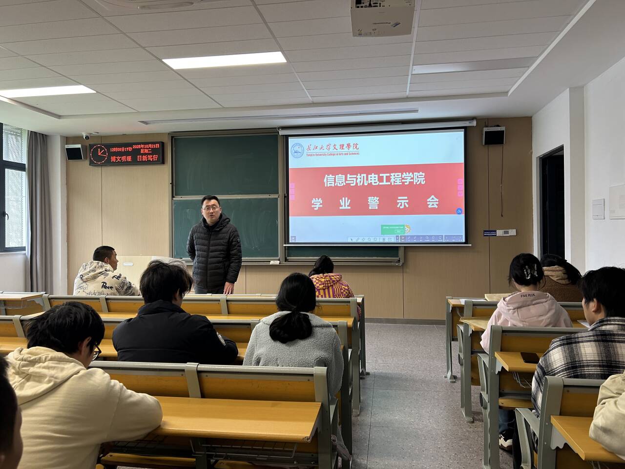 本网讯 10月21日,学院组织召开2025年学业警示座谈会。学院副院长呙明辉出席并讲话,辅导员老师、教学办老师和相关学生参加会议。