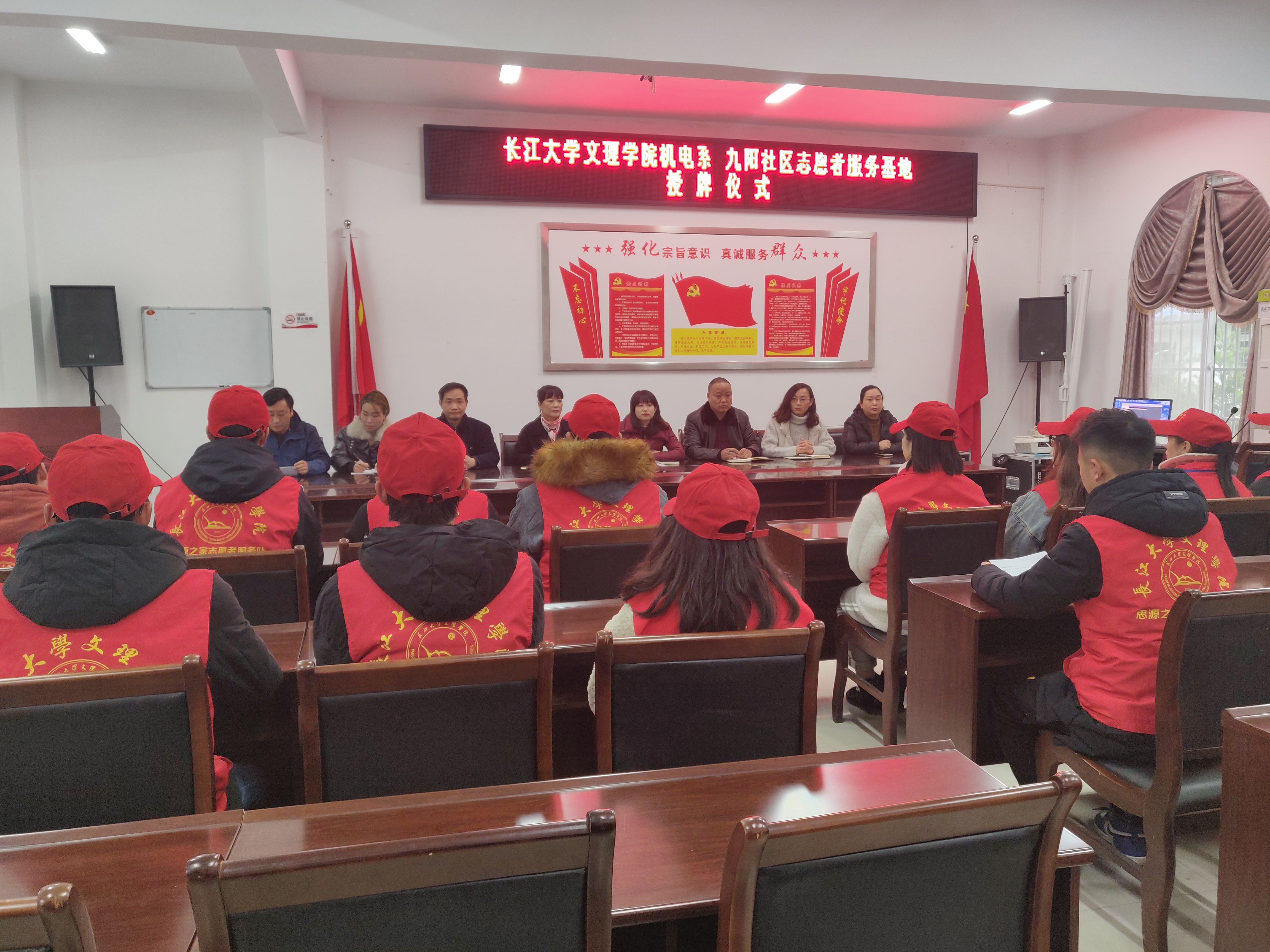 罗婷代表学院团委、学工部对九阳社区服务中心的各位领导表示真诚的感谢,对志愿者服务基地的建立表示衷心的祝贺。她提出,所有的志愿者们一要提高认识,把责任“担”起来;要自觉提高认识,承担责任,认真牢记并切实履行“志愿服务,竭诚奉献”的初心和使命。二要真抓实做,把作用“活”起来;志愿者服务要主动寻求服务机会,积极挖掘服务内容,开展系列特色服务,为社会分忧、为和谐出力。