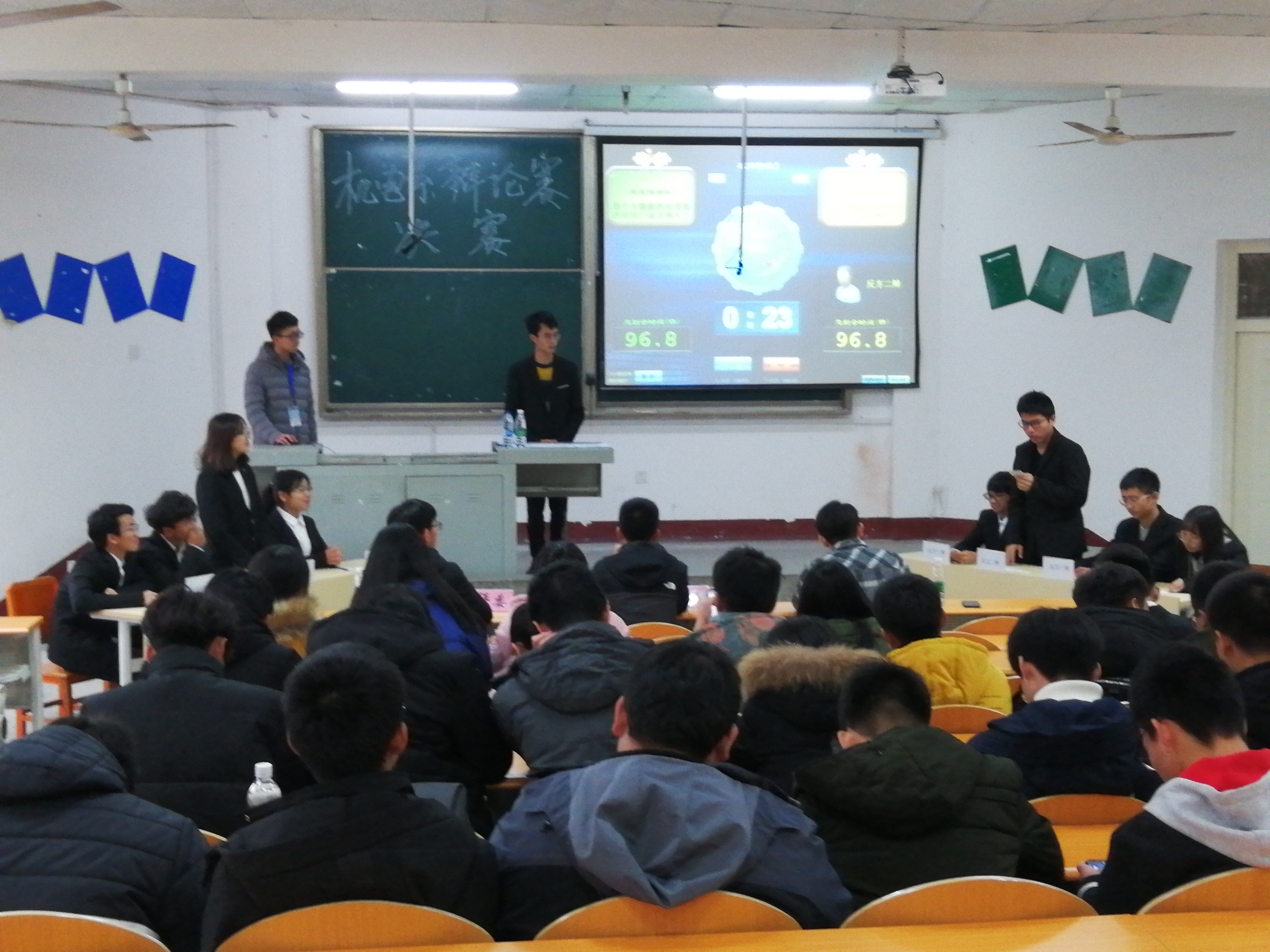 本网讯(学生记者刘文婷)12月15日下午,在西校区四教200教室,我系辩论赛圆满收官。本次决赛特邀系辅导员成观雄、演讲与辩论协会会长唐昊、系团总支副书记胡波担任评委,秘书处程继松、吴邦逸主持,近百余名同学现场观看。