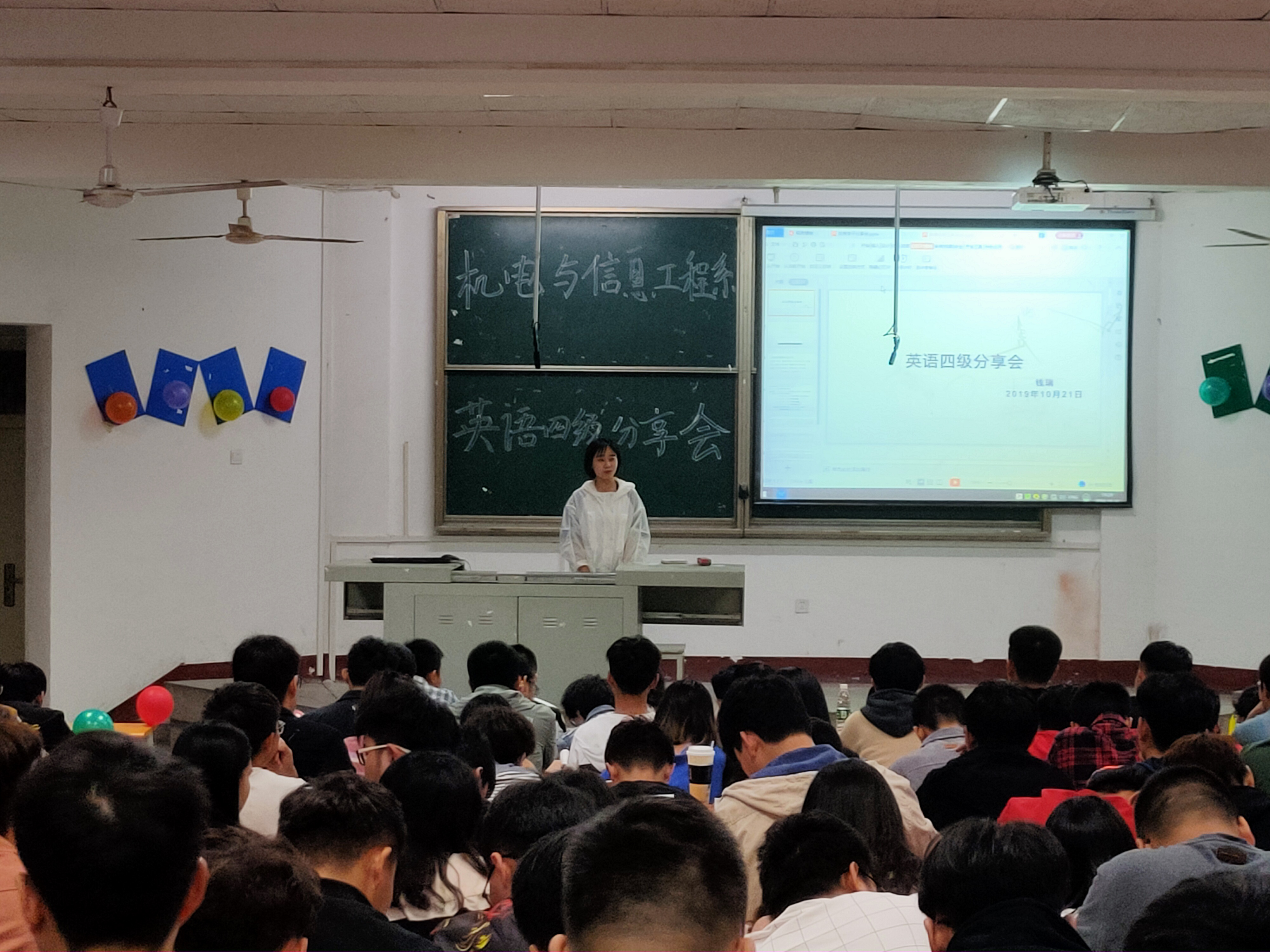 本网讯(学生记者 刘瑞华)10月21日晚,在我院西校区四教200教室,我系开展2018级英语四级考前分享交流会。会议由系团总支组织部副部长周雪明主持,18级全体学生参加。本次大会特邀电信5161钱瑞、物联5171孙甜分享考试技巧与经验。