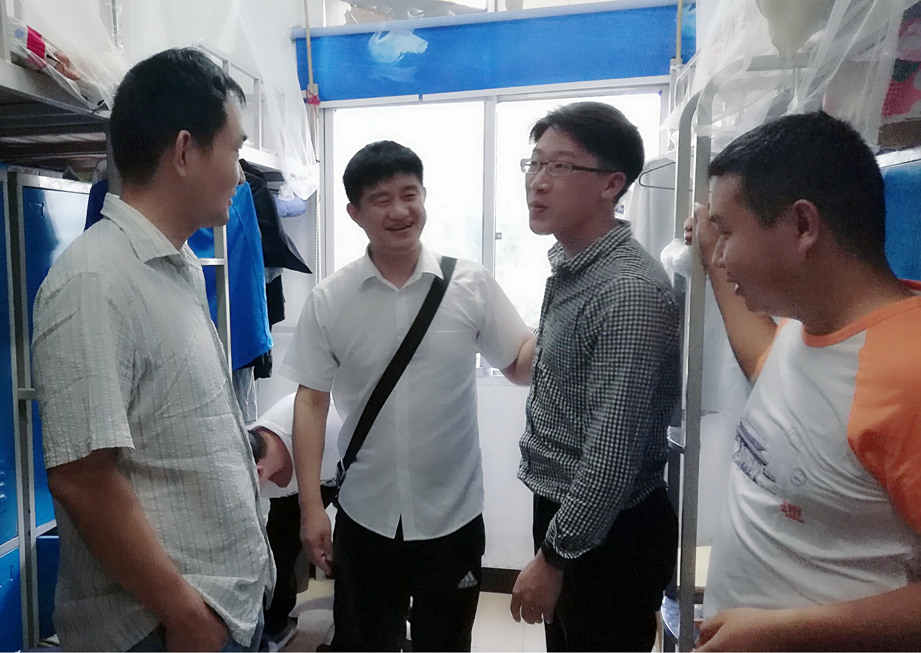 每走访一间宿舍,我系领导都与同学们进行亲切交谈,详细了解毕业生们毕业后的去向、对以后工作有何安排和最近的生活状况,并耐心地听取毕业生们对未来的生活和工作的期望与想法。