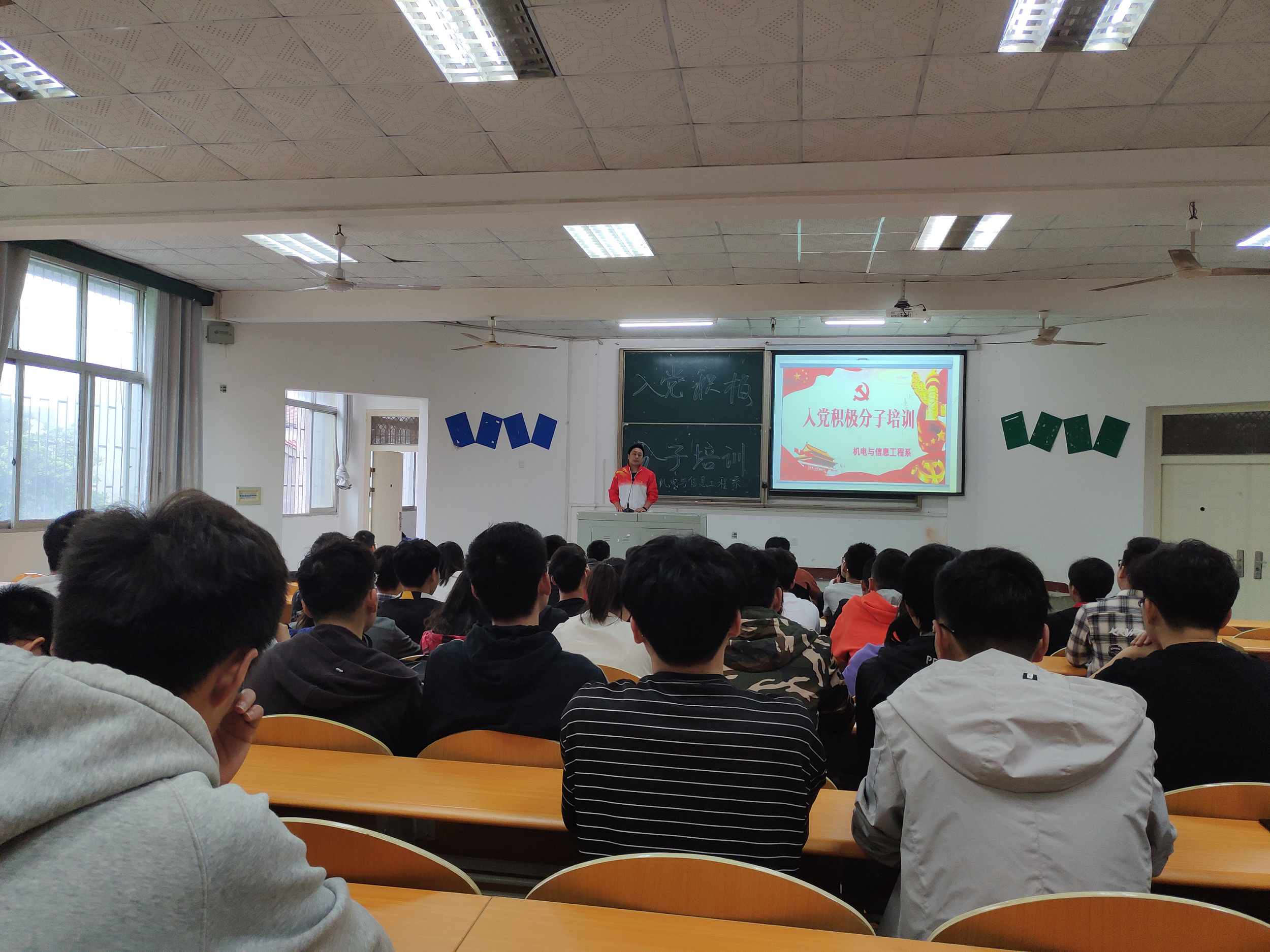 本网讯(学生记者刘文婷)5月14日中午,在西校区4教200教室,我系开展入党积极分子培训活动。我系4名预备党员、6名发展对象、45名入党积极分子参加,计科5171熊梦园主持活动,党总支副书记辛裕出席。