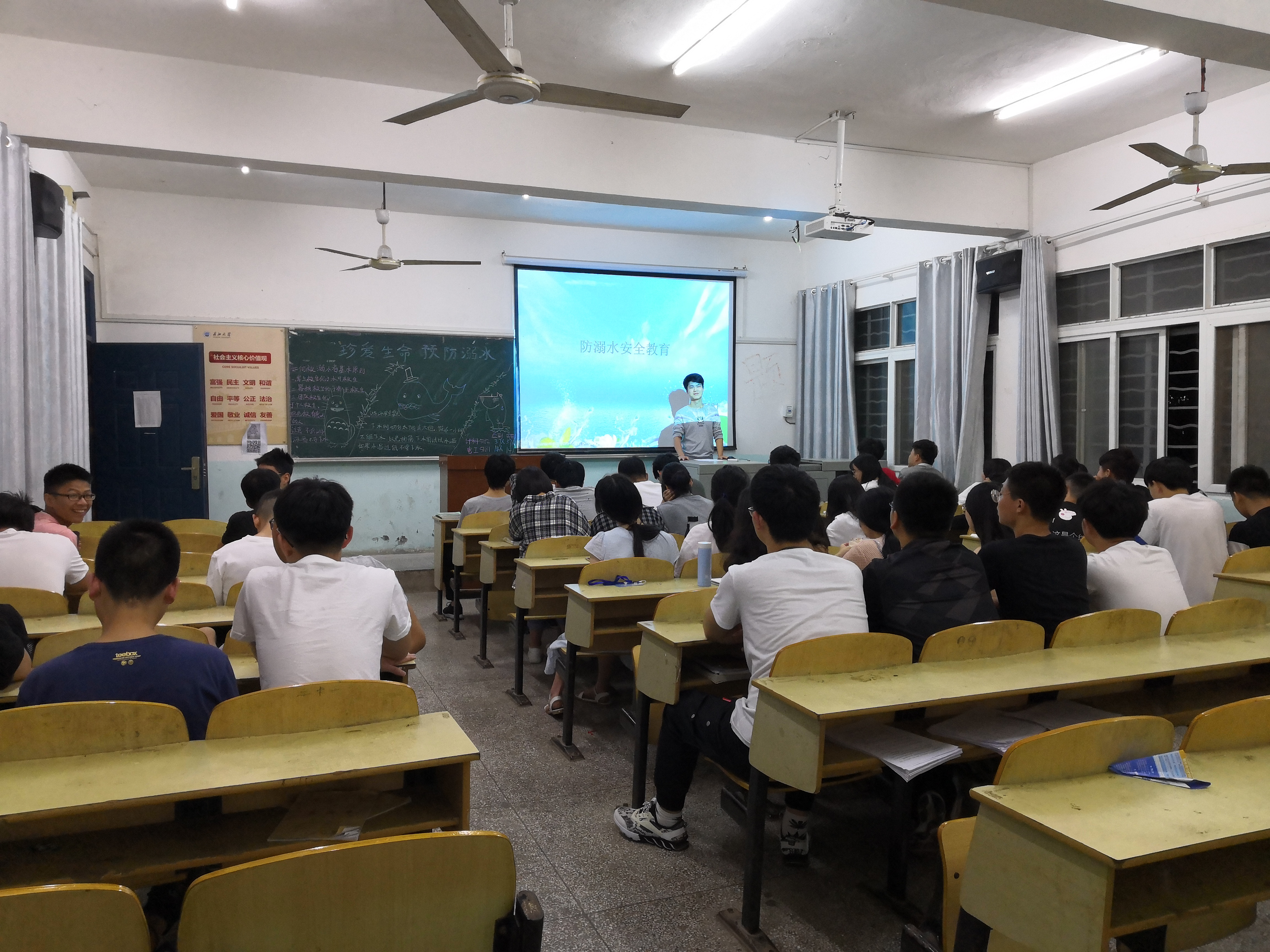 本网讯(学生记者 刘瑞华)5月19日晚,在西校区各自习室,我系各班开展防溺水安全教育主题班会,会议由各班班干部主持,各班同学全员参加,辅导员李辉、成观雄出席。