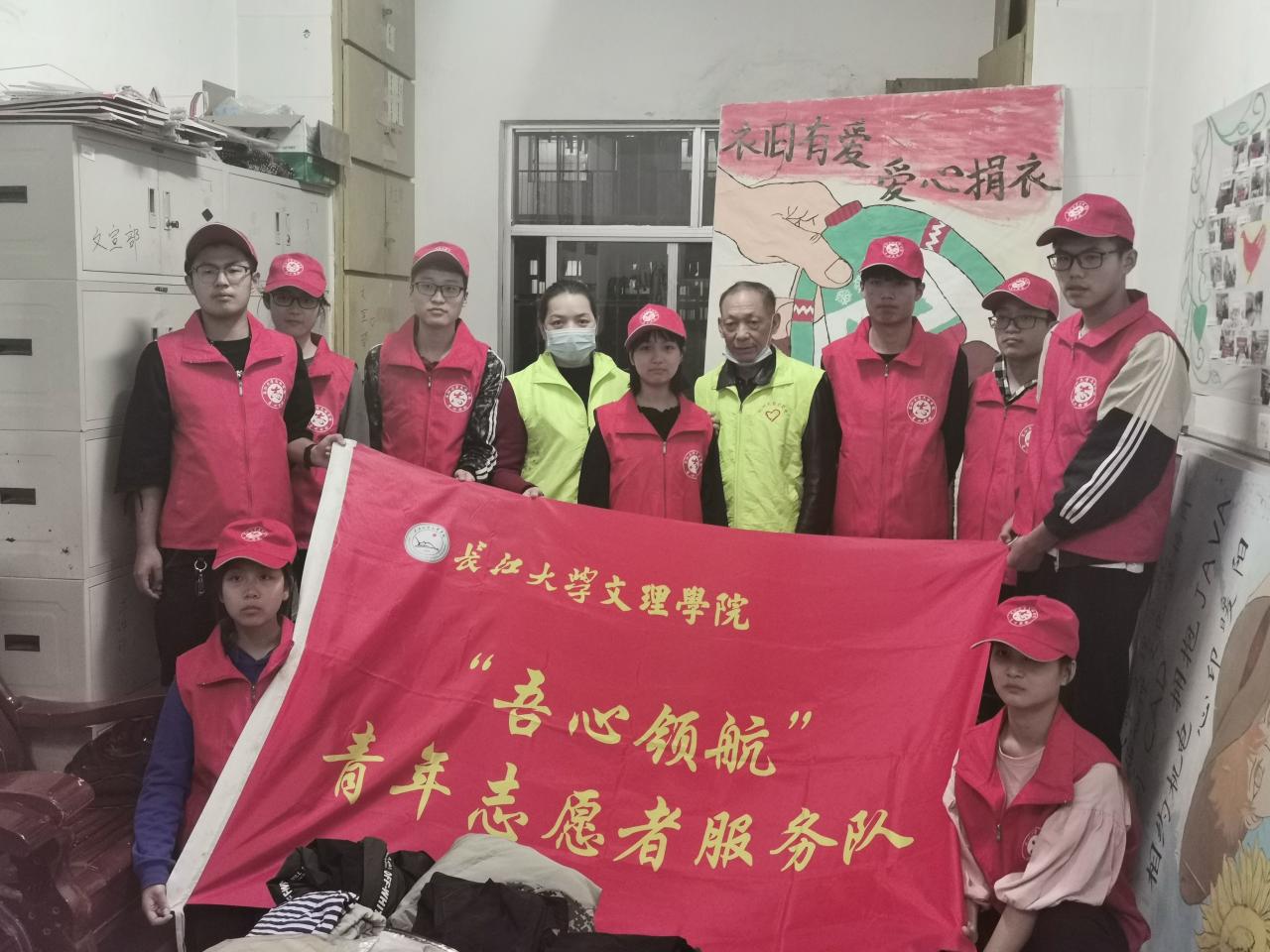 在活动进行的两天里,共收到同学们捐赠衣物210件,他们用一件件的衣物传递着属于他们的温暖。志愿者们也分批次进行轮流值班,记录捐赠同学的相关信息和将同学们捐赠的爱心衣物进行整理。并在23日下午,在我系学生会办公室,将清点和打包好的衣物移交给荆州好人爱心工作站的负责人,与他们现场合照。负责人当场表示非常感谢,并为我系志愿者服务队送上感谢信。