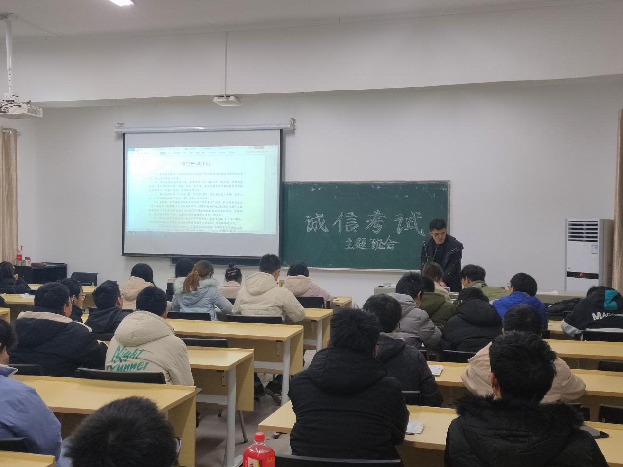 本网讯(学生记者 黄懿萱)四级考试临近,为加强诚信考试教育,使同学们更好的了解大学生英语四级考试规则。12月10日晚,在西校区各班自习室,我系开展大学生英语四级诚信考试主题班会。班会由各班班长主持,班级全体同学参加。