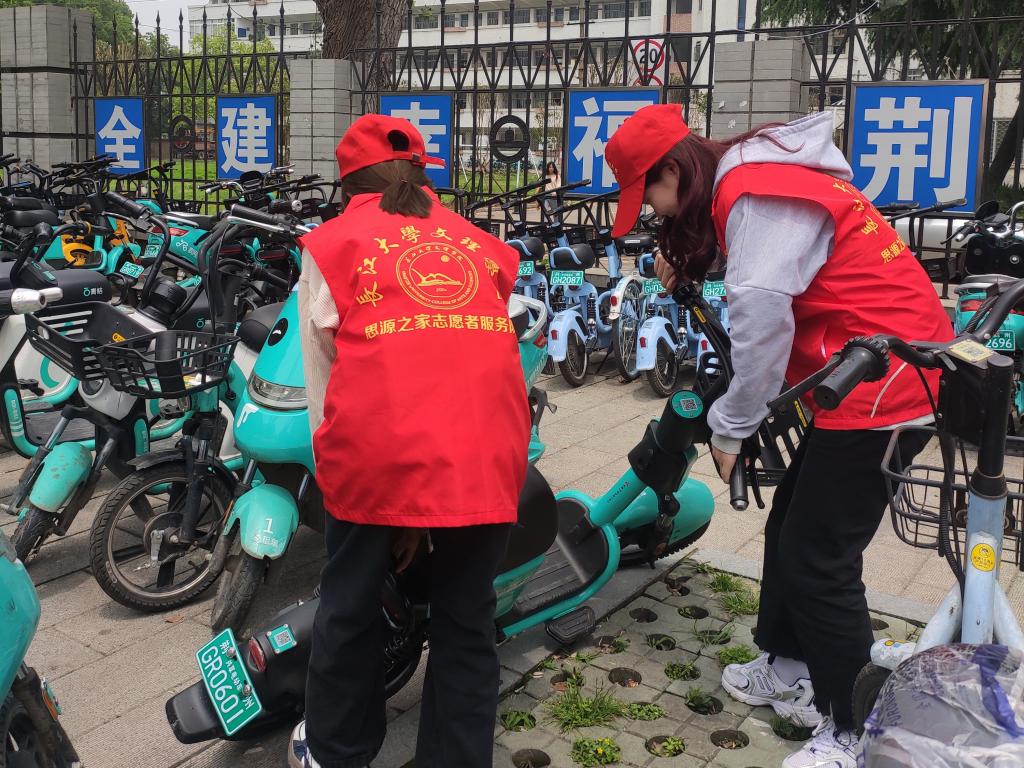 活动期间,志愿者对学校周边街道进行大扫除,对散乱的共享单车进行统一摆放,向同学们发放卫生科普常识宣传单,广泛宣传爱国卫生运动历史,弘扬爱国卫生运动精神,大力推广健康、绿色环保的生活学习方式,并让同学们通过扫码加入到我系协办的第五届全国大学生环保知识竞赛中,通过竞赛丰富更多环保知识。