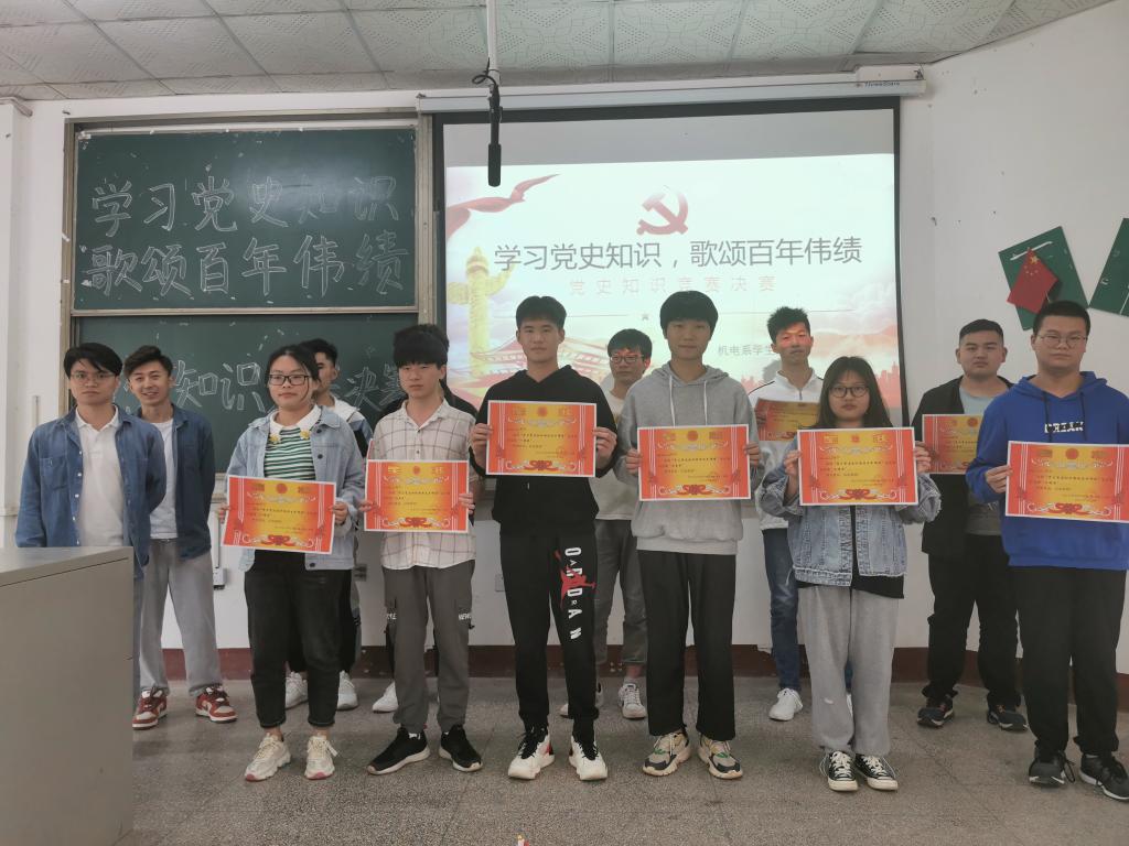 本网讯(学生记者 周晶晶)为庆祝建党100周年,深入开展党史学习教育,增加学生对党史的了解,坚定理想信念,5月18日中午,在西校区四教200教室,我系学生党支部举行“学习党史知识,歌颂百年伟绩”党史知识竞赛决赛,比赛由物理5201班柴璇和文学赟主持,近百余名同学现场观看。