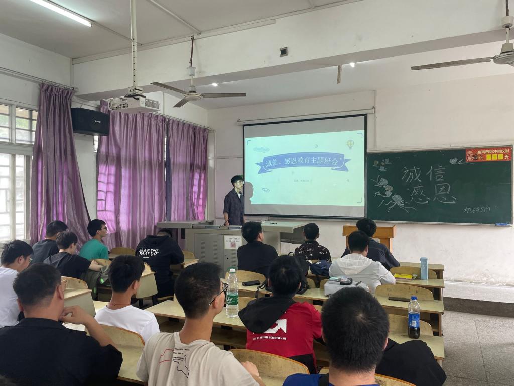 本网讯(学生记者 谢东环)为弘扬优秀品质,构建和谐校园,5月26日,我系各班开展“学会诚信,懂得感恩”主题教育班会。班会由各班班长主持,班级全体成员参加。