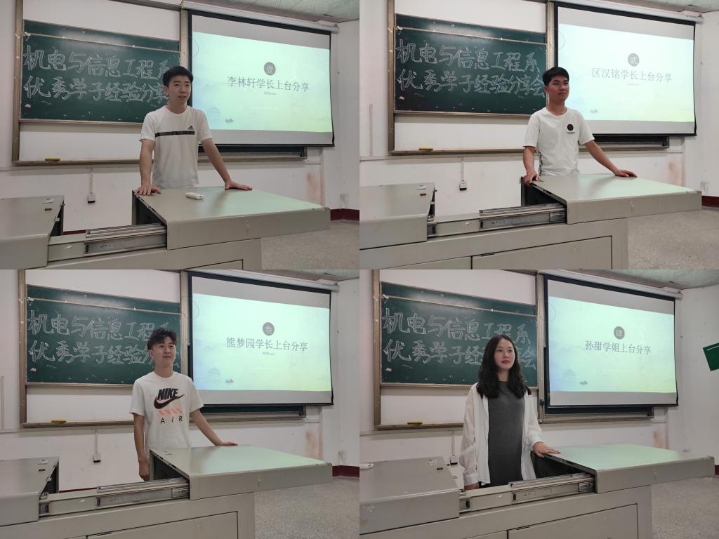 本次分享会特别邀请学院第六届“十佳大学生”获得者计科5171班李林轩、学科竞赛国家级奖项获得者机械5171班区汉铭、以及成功考取yl7703永利集团研究生的计科5171班熊梦园和物联5171班孙甜分别在学习、学科竞赛和考研方面进行经验分享。