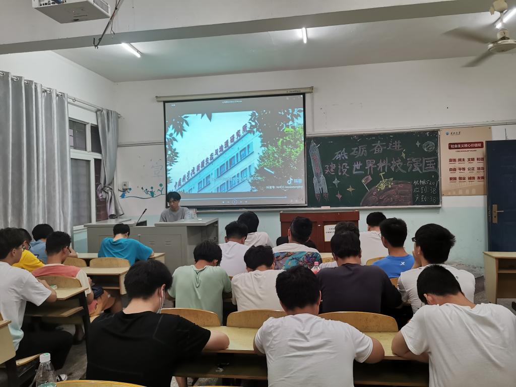 团课开始,主持人通过播放习近平总书记在两院院士大会上的重要讲话视频,从“现阶段成就”和“未来发展方向”两方面展示了我国科学技术发展之快,变化之大。随后,同学们踊跃上台分享心得体会。其中机械5201班孙健博说到:“科技是国家强盛之基,创新是民族进步之魂。我们要深入学习习近平总书记的重要讲话精神,增强创新意识和动手能力,为建设我国成为世界科技强国做出贡献。”