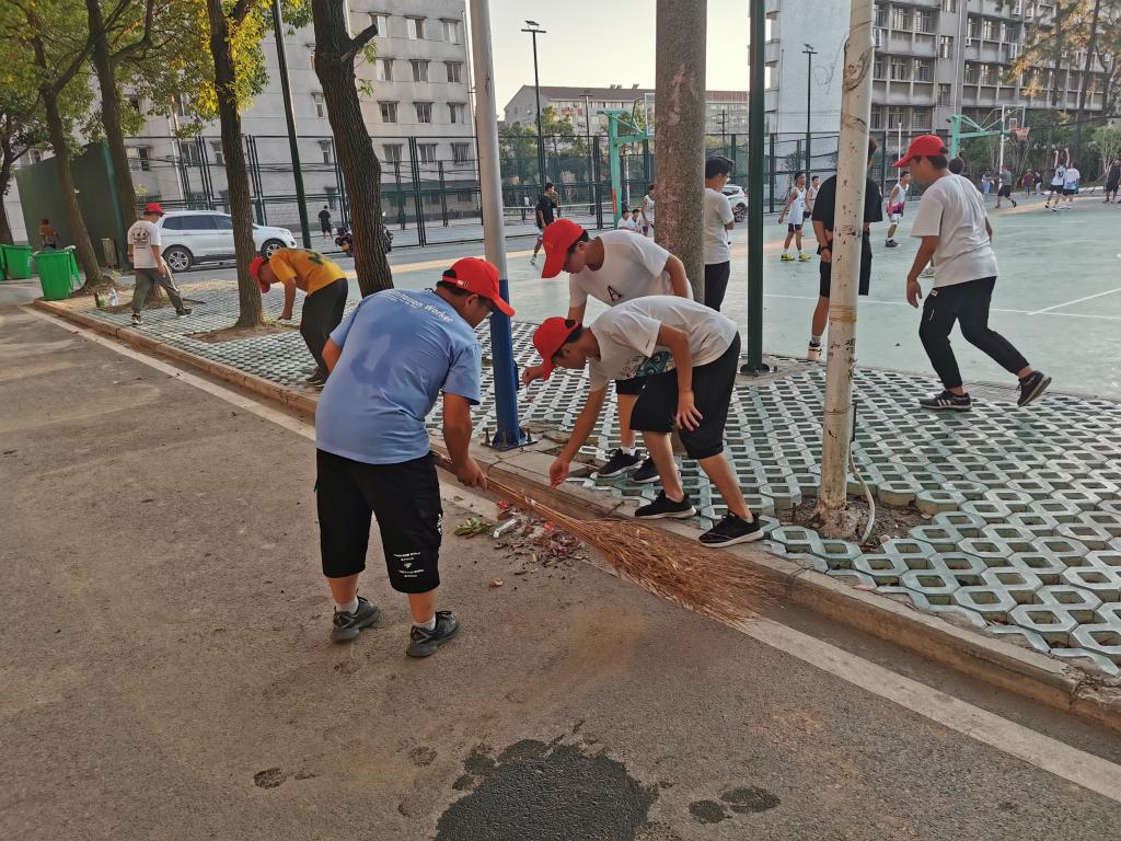 本网讯(学生记者 吴家佳)为贯彻落实我院的卫生建设工作,打造文明、和谐、健康的校园环境,9月24日下午,我系志愿者在12舍前篮球场开展校园义务大扫除活动。