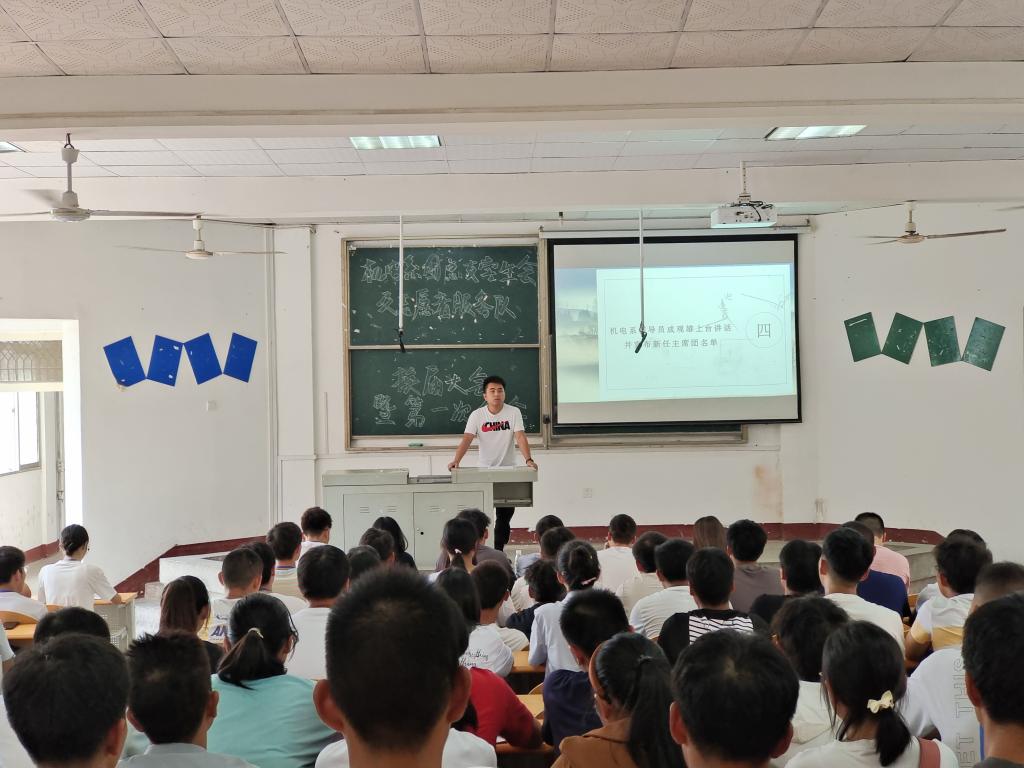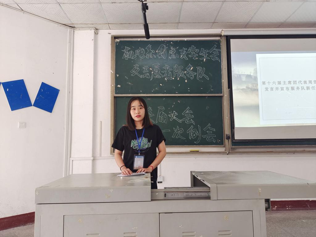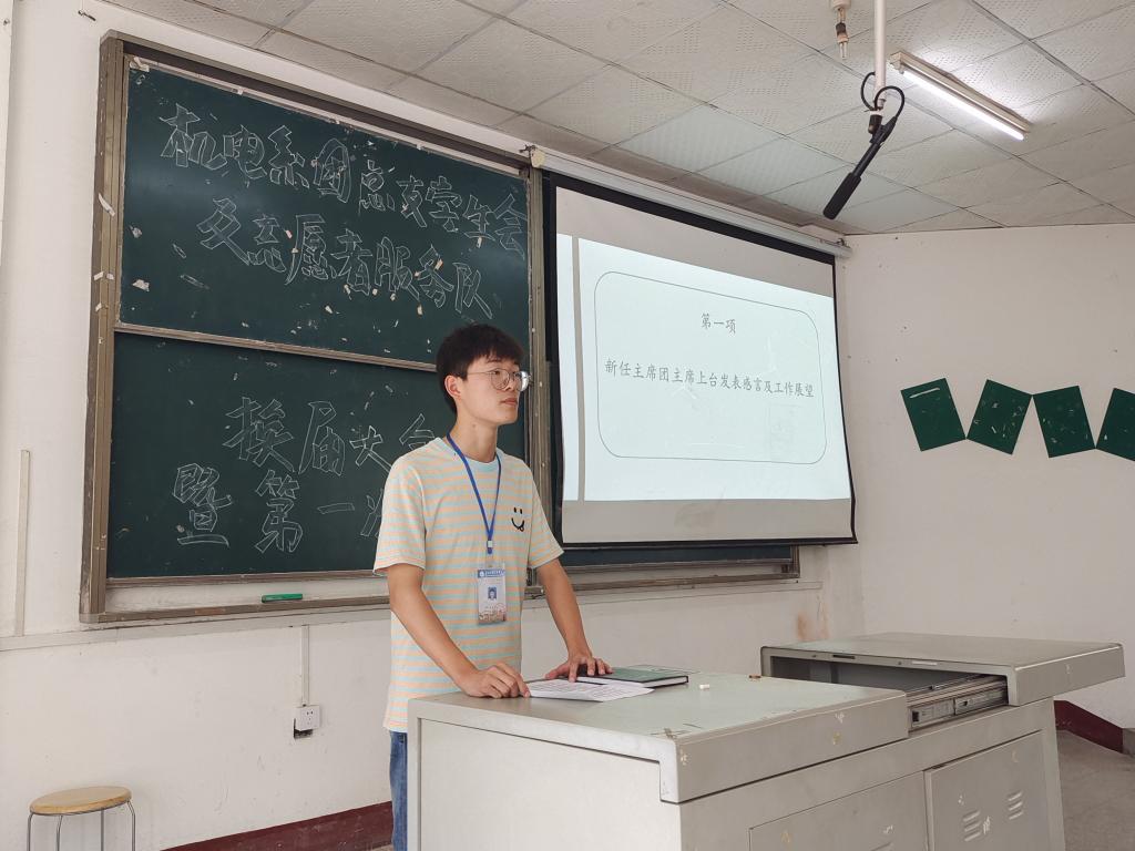 接着,新任主席团代表孔宝宝、服务队队长毛志豪登台发表工作展望和工作要求,激励同学们在工作中锻炼自己的个人能力,在学习中提升自己的技术水平。最后,成观雄对本次会议进行总结,他明确了近期团学组织的工作任务,告诫各位同学遵守规章制度,规范自身行为,以为同学服务为宗旨,共同建设机电系这个大家庭。