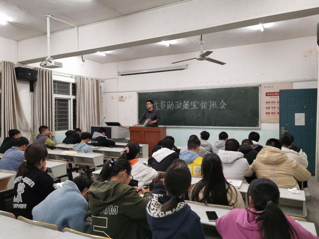 本网讯(学生记者 孙健博)10月20日,在西校区自习室,我系各班开展学生资助政策宣传班会,班会由各班班长主持,系辅导员朱亦丹出席,班级全体同学参加。