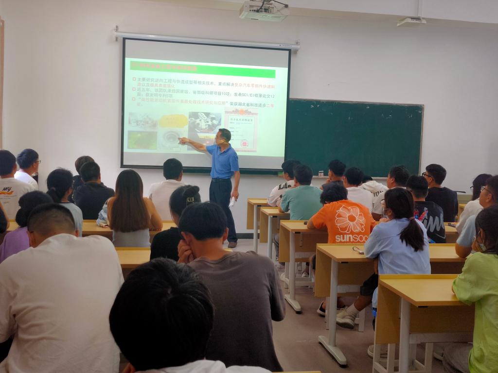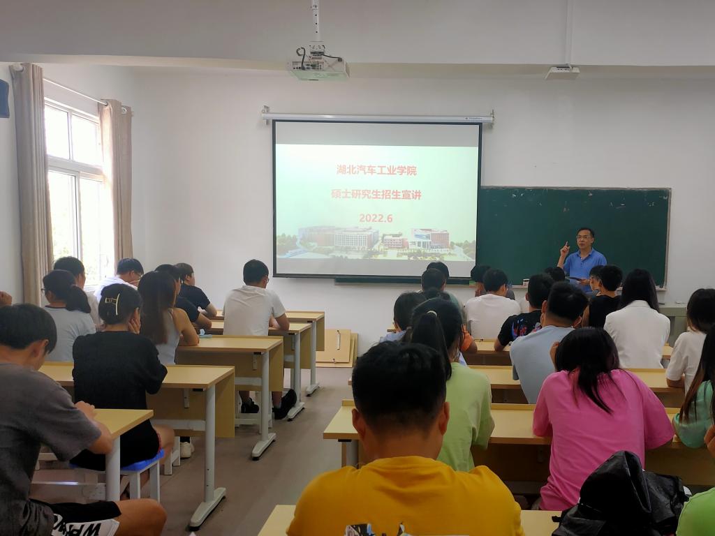 宣讲会上,材料科学与工程学院硕士生导师罗成教授以“要不要考研?”、“考研选择什么专业?”两个问题开场,阐述了考研的益处和当前汽车行业的发展前景,并围绕“特色专业”、“师资力量”、“科研成果”、“合作对象”、“奖助体系”、“生活条件”六个方面对湖北汽车工业学院进行介绍,带领同学们深入了解该院的发展历程、招生专业、科研平台和就业与职业发展。最后,他向同学们展示了该院的研究生选拔标准和人才培养计划,鼓励同学们积极报考、继续学习,用知识武装头脑,用实践开拓未来。