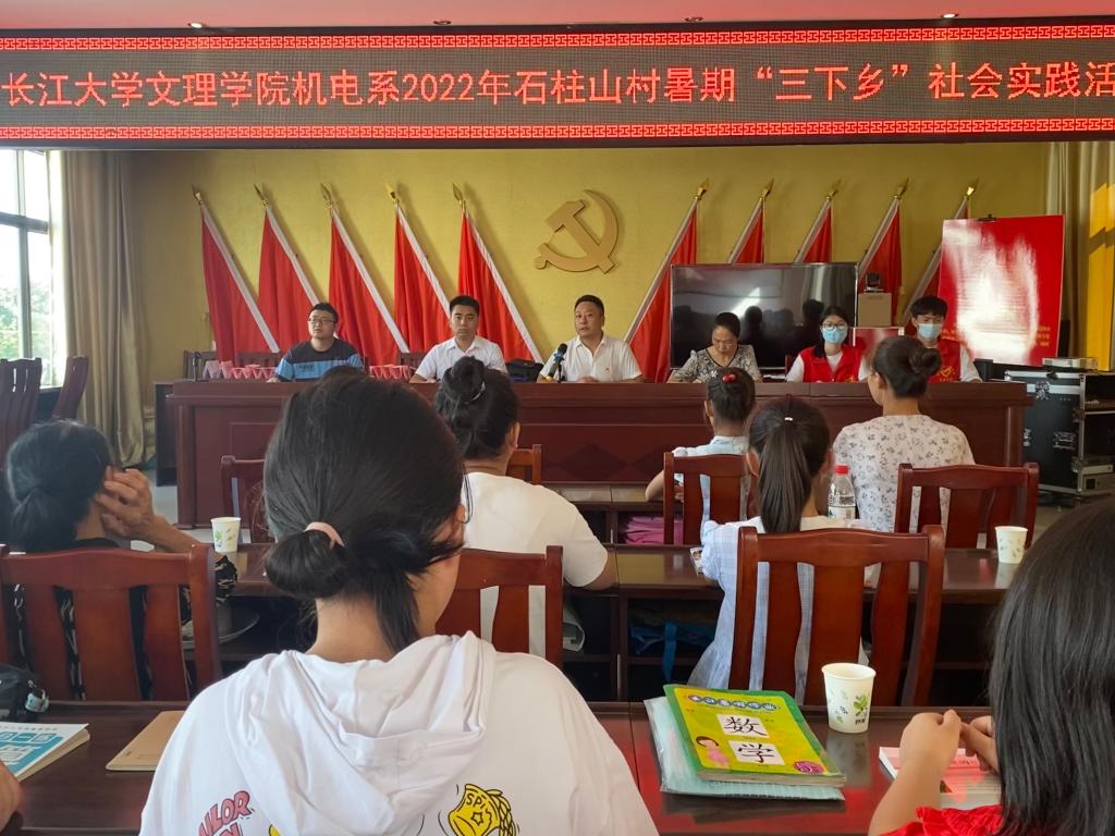 本网讯(通讯员 吉翠 张依格)为积极响应湖北省大学生“三下乡”社会实践活动的号召,8月20日上午,yl7703永利集团机电与信息工程系社会实践团队在五峰石柱山村居委会二楼,举行了主题为“践行初心使命,助力乡村振兴”的2022年暑期“三下乡”社会实践活动开幕式。会议由驻村第一书记辛裕主持,村“两委”王群芳、戴金华、卢涛,机电系学生党支部书记成观雄、10名大学生志愿者、学生及家长参加开幕式。