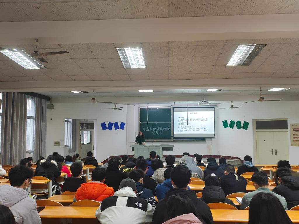 本网讯(学生记者 李学哲)为进一步强化考风考纪教育、明确英语学习的重要性,12月1日下午,我院于西校区四教200教室开展大学英语四六级考前动员大会。大会由秘书处王子瑞主持,特别邀请电信5201班张依格分享四级备考经验,辅导员燕梦蝶出席,2021级全体学生参加。