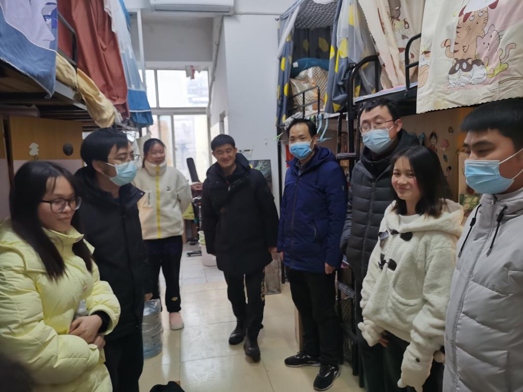 走访过程中,院系领导与同学们进行了亲切交谈,详细了解同学们寒假期间的身体健康状况与学习生活情形,并询问同学们返校后的适应情况。他们希望同学们积极调整心态,科学制订学习计划,保持一个良好的生活作息和精神风貌。同时领导们还叮嘱同学们要遵守疫情防控要求和宿舍规章制度,注意用电安全,妥善保管个人财物,做好卫生管理,保障宿舍整洁。此外,院系领导鼓励同学们要勇于表达自我,展现自身特长,积极参与各项学科活动,在德智体美劳各方面全面发展。