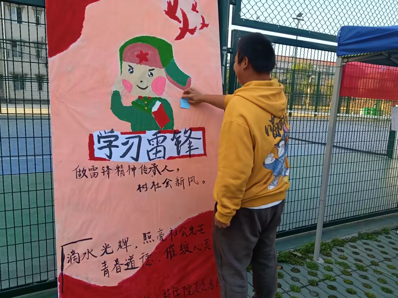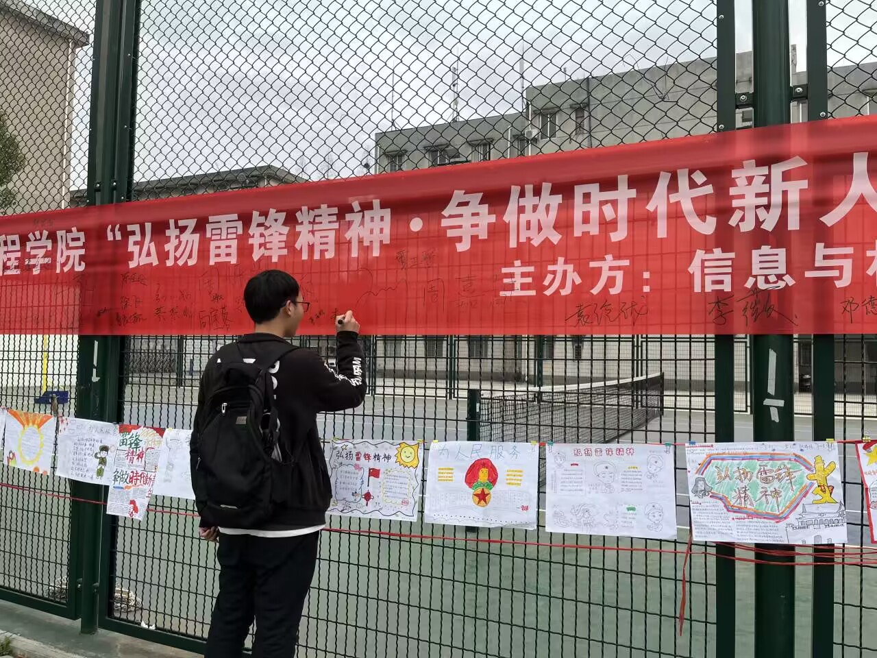 同学们在志愿者的引导下,纷纷在横幅上郑重地签下了自己的姓名,表达对雷锋同志的纪念和学习雷锋精神的决心。签名现场,同学们广泛参与、积极互动,营造了一股学雷锋的火热氛围,让学雷锋精神意识更深地扎根于每个人的心目中。