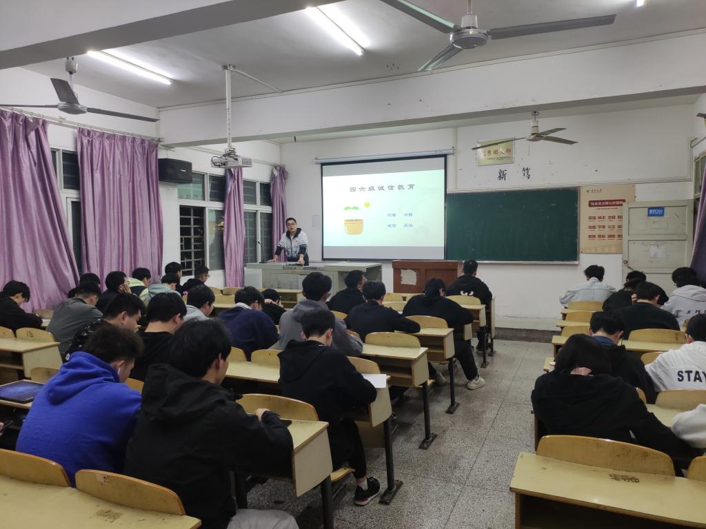 本网讯(学生记者 张瑞琦)为进一步强化学风建设,严肃考风考纪,3月5日,我院各班开展四六级诚信考试主题班会。班会由各班辅导员主持,我院全体学生参加。
