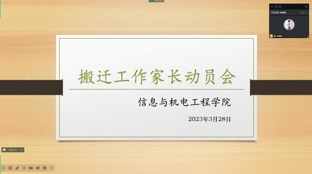 本网讯(学生记者 黄盼盼)3月28日中午,在腾讯会议平台上,我院开展学校搬迁工作家长动员会。动员会由辅导员主持,我院全体学生家长参加。