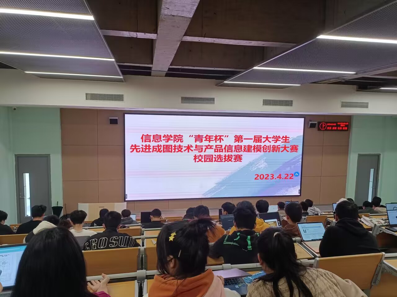 本网讯(学生记者 张瑞琦)4月22日下午,我院于B-214S教室开展“青年杯”第一届大学生先进成图技术与产品信息建模创新大赛校园选拔赛。本次选拔赛由秘书处朱佩欣主持,我院指导老师朱锐、梁荆璞、刘永辉、马秀花出席,我院机械专业全体学生参加。