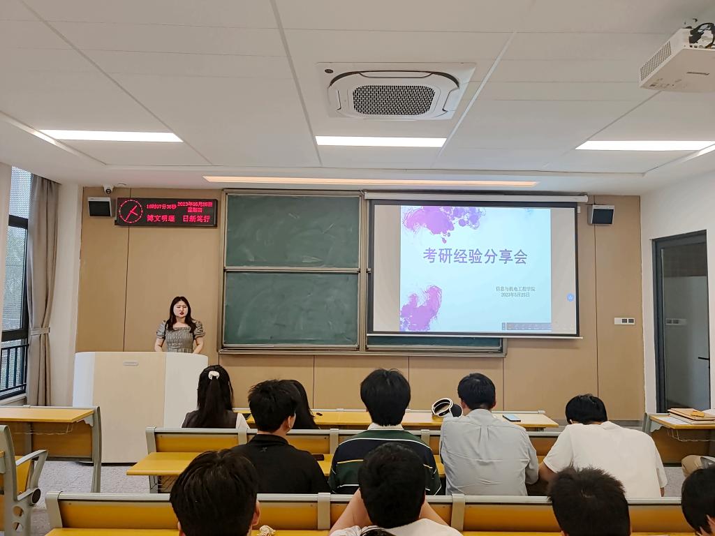 本网讯(学生记者 黄盼盼)5月25日下午,在A-205M,我院召开考研经验分享会,会议由秘书处夏书侨主持,邀请考取研究生的计科5192何苏、电信5191漆丽华和机械5191孙杨作讲解,辅导员燕梦蝶出席,我院部分学生参加。