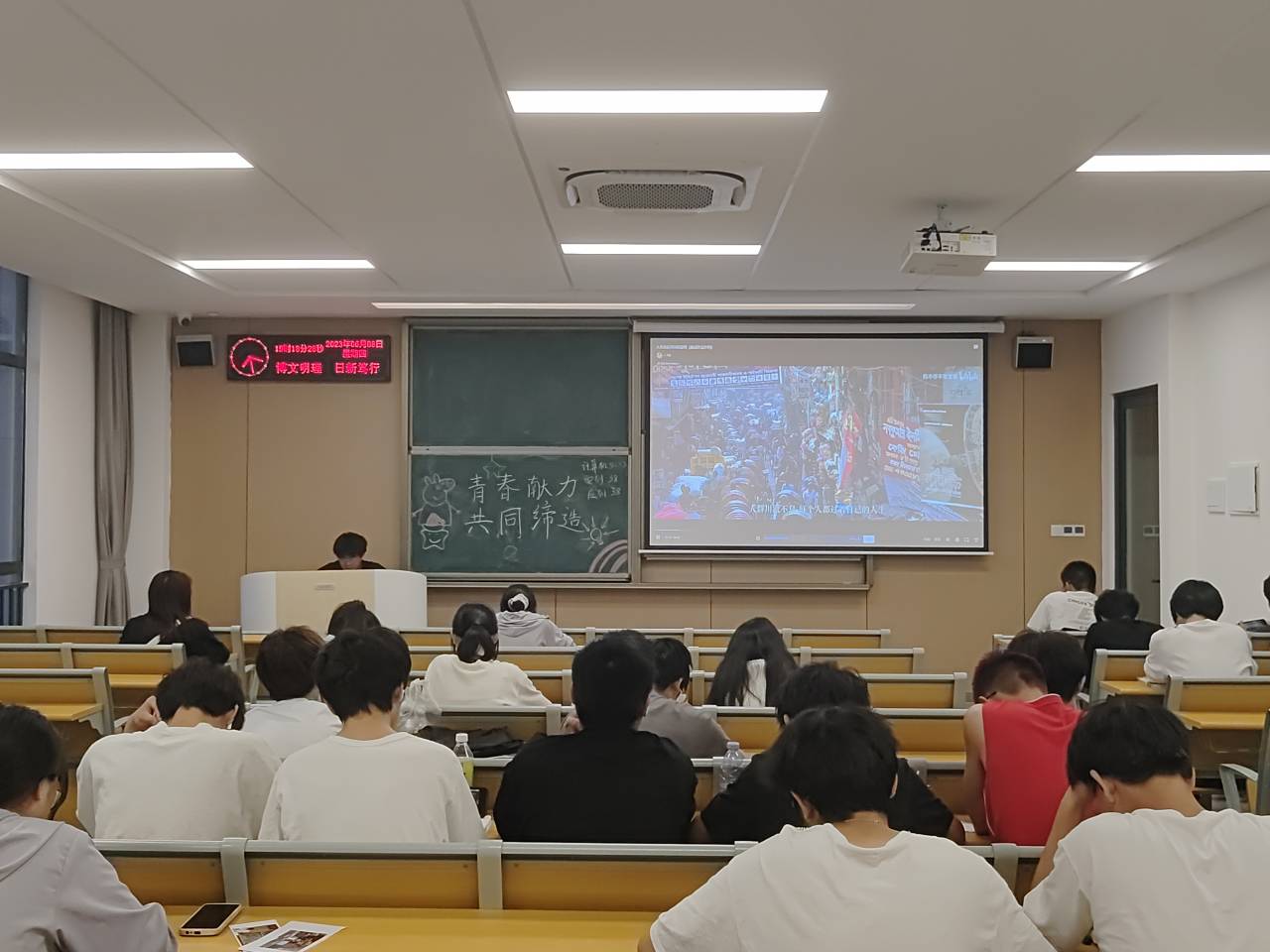 本网讯(学生记者 郭文静)6月8日,我院开展“青春献力,共同缔造”主题团课,团课由各班团支书主持,班级全体同学参加。