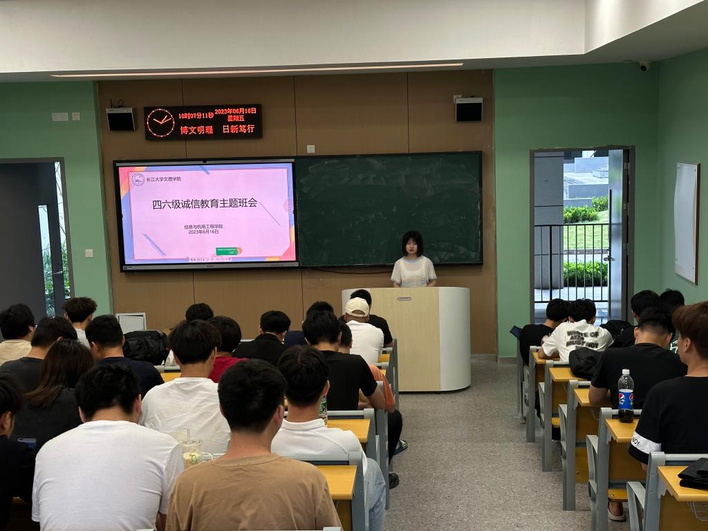 本网讯(学生记者 张瑞琦),为增强学生的诚信意识和责任担当、营造学院诚信考试之风,6月16日,我院组织召开四六级诚信考试教育主题班会,班会由各班辅导员主持,学院全体学生参加。